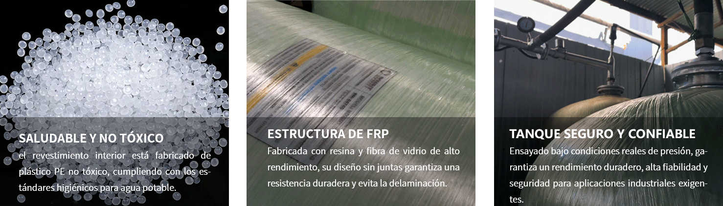 | Material del tanque exterior | Fibras de fibra de vidrio reforzado de alta calidad (GFRP) combinadas con resina epoxi. |