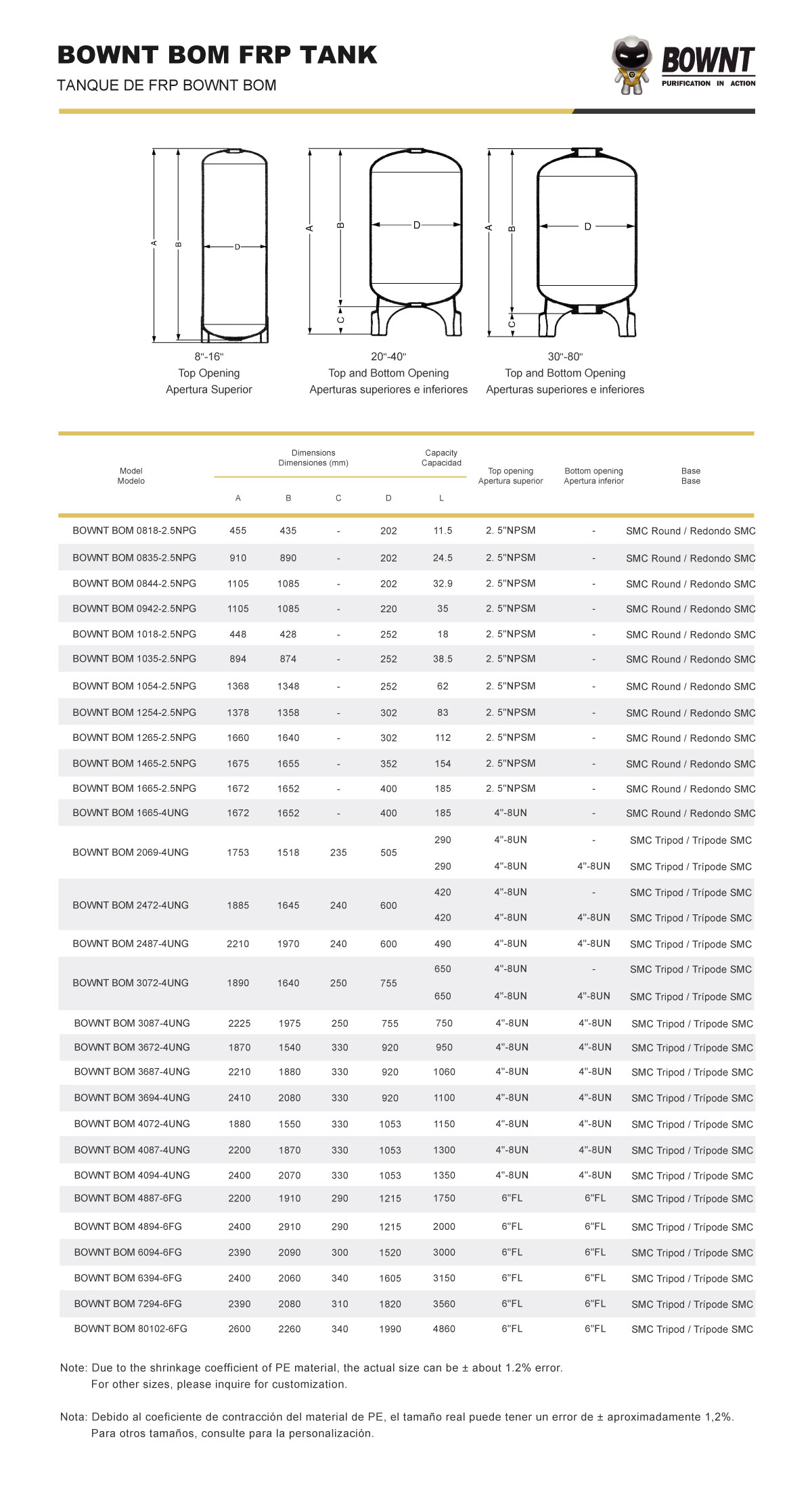 | Material de la base del tanque | PP/PE /FRP |
